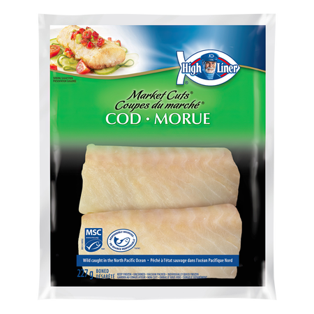 Les longes de morue Coupes du marché® proviennent de morues pêchées à l’état sauvage les océans Pacifique Nord et Atlantique Nord et sont scellées sous vide pour en préserver la fraîcheur. La morue est douce au goût et se défait en gros flocons tendres après la cuisson. La longe est la coupe de poisson de notre plus haute qualité qui soit et se distingue par une saveur et une texture supérieures à celles des autres coupes du filet. Les Coupes du marché sont coupées à la main et triées sur le volet pour assurer des portions uniformes et une cuisson égale. Elles impressionnent à tout coup!