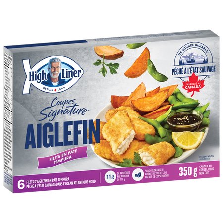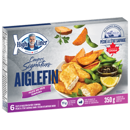 Tendres filets d'aiglefin blancs, apprêtés dans une pâte tempura croustillante, affichant le goût et la qualité que vous attendez de High Liner®.