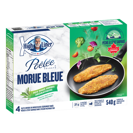 Savourez un délicieux repas digne d’un chef à la maison! Les filets de morue bleue pêchée à l’état sauvage légèrement panés sont assaisonnés d’un savoureux mélange de fines herbes, dont le romarin, le thym et un soupçon d’estragon. Notre produit "Poêlée Sélecte" peut être cuit à la friteuse à air chaud, au four ou au barbecue. Pour plus de commodité, pas besoin d'utiliser de l'huile.