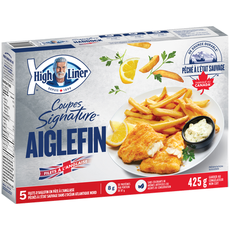 Savourez notre poisson en pâte à l’anglaise traditionnelle! Pâte légère et croquante à l'extérieur, poisson moelleux et floconneux à l'intérieur. Aiglefin pêché à l’état sauvage dans l’océan Atlantique Nord.