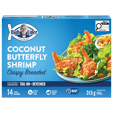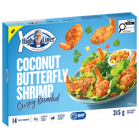 Savor the perfect combination of tender shrimp and a delicious, crispy breading with real coconut flakes. High Liner® Coconut Butterfly Shrimp offers a deliciously crunchy bite with just the right balance of coconut flavor. Whether enjoyed as a snack, appetizer, or part of a meal, this easy-to-prepare seafood option is sure to please the whole family. A great choice for any occasion!